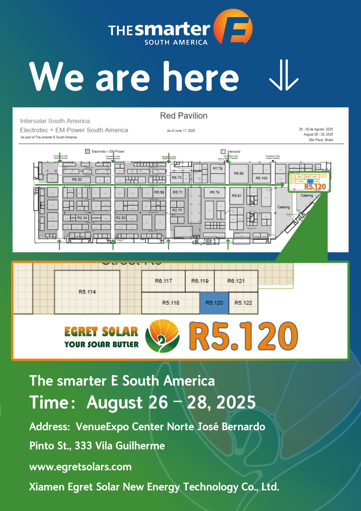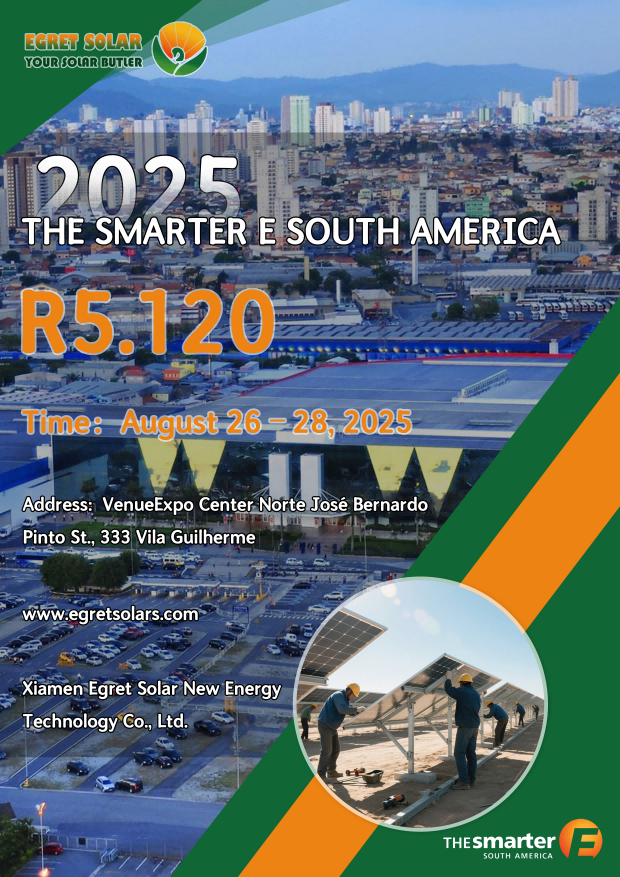 Sebagai pemain kunci di sektor energi baru,Xiamen Egret Solar New Energy Technology Co., Ltd.Akan memamerkan produk intinya dan solusi teknis di pameran Amerika Selatan 2025 di Brasil mulai 26-28 Agustus 2025, untuk membahas pengembangan dan kerja sama pasar energi baru Amerika Selatan dengan mitra industri global.