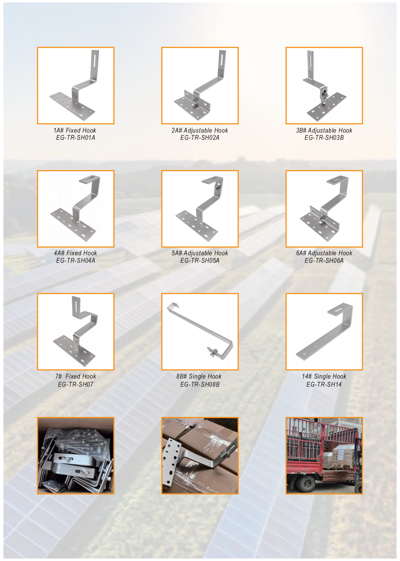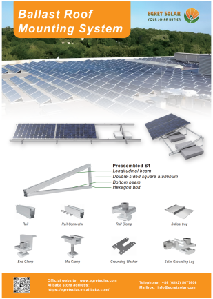 Egret Solar membawa banyak sampel ke pameran. Produk utama yang dipromosikan berbeda sesuai dengan lingkungan yang berbeda. Ada sistem braket rel pendek, sistem braket kaki dan sistem kaki depan dan belakang yang dapat disesuaikan yang dapat digunakan pada atap logam; Sistem pemasangan baja karbon dan sistem pemasangan carport aluminium untuk carport surya; Sistem pemasangan tanah dengan kolom tunggal dan sistem pemasangan tanah dengan kolom ganda untuk penggunaan tanah; Braket pemasangan atap ubin umumnya digunakan untuk atap ubin, dan kait dan rel dapat dipilih sesuai dengan situasi aktual; Sistem pemasangan atap ballast dan sistem tripod paling sering digunakan untuk atap datar. Beri tahu kami skenario instalasi, kecepatan angin, beban salju, anggaran, dll. Dan kami akan menyesuaikan desain untuk Anda. Anda dapat mempercayai kami dengan sepenuh hati.